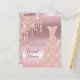 Elegant, classic, glamourous and girly style bridal shower invitation. A rose gold dress with faux rose gold glitter drip. Dark rose gold faux metallic looking background. With the text: Bridal shower on front written with a modern dark rose coloured hand lettered style script.