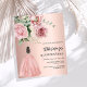 A modern, stylish and glamourous invitation for a Quinceañera, 15th birthday party. A rose gold background decorated with pink large roses and greenery, a girl wearing a ball gown. The name is written with a modern hand lettered style script. Personalise and add your party details.