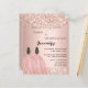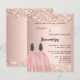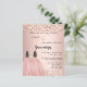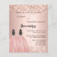 A modern, stylish and glamourous invitation for a twin Quinceañeras, 15th birthday party. A rose gold background with faux gold glitter, 2 girls wearing ball gowns. The name is written with a modern hand lettered style script. Personalise and add your party details.