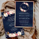 Rose Gold Dusty Pink Floral Navy Blue Wedding Invitation