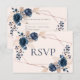 Rose Gold Dusty Pink Navy Flora Wedding RSVP Card