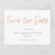 Rose Gold Faux Foil Save the Date postcard featuring "Save the Date" in rose gold calligraphy.