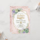 Elegant graduation party invitation featuring faux gold geometric frame adorned with watercolor succulents, pink flowers and green foliage