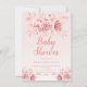Rose Gold Floral Blush Glitter Baby Shower Invitation