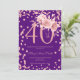 Rose Gold Floral & Confetti 40th Birthday Purple Invitation