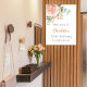 A stylish white background decorated with a rose gold and blush pink watercolored floral, flower, eucalyptus greenery, golden sprigs. Personalise and add a name and age.