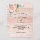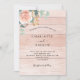 Rose gold wood as background. Decorated with a rose gold and blush pink floral, rose flower and green watercolored eucalyptus leaves, sprigs, greenery and a faux gold sprig. Personalise and add your names and wedding details.
