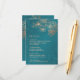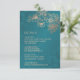 Rose gold floral line art cherry blossoms on a shimmering teal background. Matching wedding invitation available.