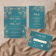 Rose Gold Floral Line Art Teal Wedding Enclosure Card