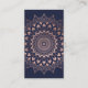A modern yoga instructor business card, boho, hand painted rose gold floral mandala, the navy blue background colour is fully customisable