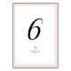 Elegant black and white minimalist wedding table number cards with faux rose gold floral and borders, simple and stylish. Great for modern classic wedding, and formal wedding.