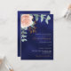 Rose gold floral navy blue QR RSVP luxury wedding Invitation