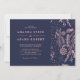 Rose Gold Floral Pattern Navy Blue Stylish Wedding Invitation