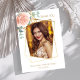 A modern and elegant birthday photo thank you card. A chic white background. Decorated with a rose gold and blush pink roses, florals flowers and eucalyptus greenery. Black and golden letters. On the front the text: Thank You, name, and a date.