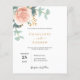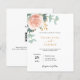 A chic white background. Decorated with a rose gold and blush pink floral, rose flower and green watercolored eucalyptus leaves, sprigs, greenery and a faux gold sprig. Personalise and add your names and wedding details. Black and golden coloured letters.