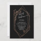 Our modern black birthday invitation features a rose gold geometric centerpiece with delicate flowers.