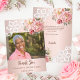 A modern birthday Thank You photo card. A rose gold gradient background decorated with pink roses, flowers and lace. Personalise and add your photo on the front and thank you note on the back.