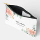 A white background. Decorated with watercolored rose gold roses, eucalyptus greenery and golden sprigs.