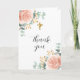 White background. rose gold florals and eucalyptus greenery. Thank you is written with a large hand lettered style font.