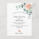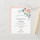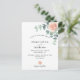 On the front: A chic white background. Decorated with rose gold watercolored roses, florals flowers and eucalyptus greenery. Personalise and add your names and wedding details. Black letters.