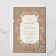Embrace the grandeur of your wedding day with this stunning invitation, which features a luxurious baroque design in sage and a shimmering rose gold foil. The front of the invitation is a testament to elegance with a central beige panel for the couple's initials, surrounded by an elaborate pattern reminiscent of the artistic richness of the Baroque era. The back of the invitation, equally opulent, presents the wedding details framed by a cream-coloured text box, with the ornate sage and rose gold motifs creating a border that speaks of nobility and timeless charm. This invitation is perfect for those who desire a sophisticated touch of historical artistry for their special day.