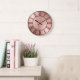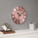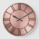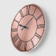 Faux shiny pink copper or rose gold metallic foil paired with thin black roman numerals and black rings at both ends of the numbers.