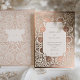 This stunning wedding invitation is a masterpiece of elegance, featuring a luxurious rose gold foil detailing on a premium cream paper. The design is inspired by the graceful curves and natural motifs of the Art Nouveau period, creating a sophisticated and romantic aesthetic. The front of the invitation displays an exquisite border with intricate floral patterns and the couple's initials, while the central panel elegantly presents the wedding details in a classic typeface. This invitation is perfect for couples who desire a touch of historic charm and opulence for their special day.
