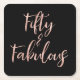 Rose Gold Foil Fifty and Fabulous Square Paper Coaster