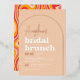 Real rose gold foil pressed bridal shower invitations. A trendy, modern take on a retro theme! These bridal shower invitations have bright colours, simple shapes, real foil, and groovy type. The front of these cards features a soft beige colour. There is a rose gold arch border framing the text. The event details are aligned to the bottom left-hand side with the bride's name in rose gold foil handwriting and "bridal brunch" in groovy typography. Some design choices in the layout of the text include the date in bold retro numbers, the venue in a larger size than the rest of the text, and "rsvp" in a boho script font. The cards reverse to a 60s & 70s hippie pattern in a bright colour scheme of pink hues and yellow tones. If you love the foil effect but rose gold does not match your event theme, there are also silver foil and gold foil options to choose from! A fun and vibrant design, perfect for spring or summer celebrations. The template text is editable online, simply click on "Personalise this template" to get started. For other edits, select "click to customise further" to access Zazzle's Design Tool. Please note the cards are printed as you see them on your screen when ordering, so be sure to double-check for typos! Other versions of this design are available in the collection linked on this page. Browse my store for more brunch and bubbly bridal shower invitations.