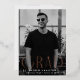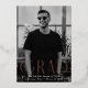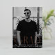 Simple graduation announcement featuring the graduate's vertical photo with "Grad" displayed in rose gold foil modern art deco lettering. Personalize the front of the single photo graduation announcement by adding the graduate's name, school, and grad year. The announcement reverses to display a black and white geometric swirl design.
