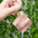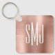A simple three letter monogram design on a rounded square two-sided keychain.