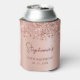 Modern Elegant Sparkle Rose gold glitter metallic Personalised Monogram Name 60th (or ANY AGE) Birthday Party Can Cooler. This Girly Adult feminine SIXTY or SIXTIETH Birhday party design featuring a Monogram Name in a stylish handwritten calligraphy script and date and age on blush pink or rose gold faux brushed metallic foil look background with loose glam glitter border. Ideal for a feminine adult or girly milestone birthday celebration, this perfectly captures the essence of a modern rose gold or blush pink glitter sparkle girly birthday party.