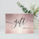 Modern elegant simple rose gold glitter beauty salon gift certificate card. Chic and trendy black script typography. Personalise with your name and business details. Beautiful and timeless design option for hairstylist, hair salon, beauty salon, nail salon, makeup artists or health and wellness professional.
