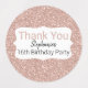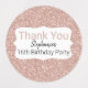 Rose gold glitter birthday thank you label. The desing features a rose gold glitter backgorund and the text "Thank You" in rose gold glitter. Also, your custom name.