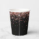 Create your own rose gold glitter and customisable solid colour black background sweet sixteen birthday party paper cups for your guests.