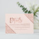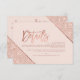 Rose Gold typography on customisable blush pink rose gold glitter colour block and faux rose gold geometric stripes chic wedding directions and details , perfect for elegant, beach wedding, add your accommodation at the back