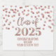 Graduation party custom champagne bottle labels class of 2025 with rose gold glitter pattern confetti.