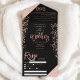 Elegant chic rose gold glitter confetti and typography chic black wedding , rose gold glitter colour block typography on customisable simple elegant black and faux rose gold geometric stripes chic wedding , perfect for elegant, luxurious wedding, add your photo, wedding details and rsvp.