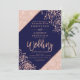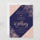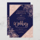 Rose Gold glitter confetti and colour block typography on customisable navy blue and faux rose gold geometric stripes chic wedding , perfect for elegant, luxurious wedding,