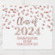 Graduation party custom champagne bottle labels class of 2024 with rose gold glitter pattern confetti.