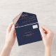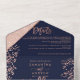 Rose gold glitter confetti navy blue wedding all in one invitation