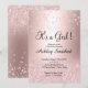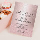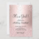 A modern, original and simple faux rose gold glitter diamond confetti and ombre with rose gold metallic It's a girl baby shower invitation on a fully customisable blush pink colour background