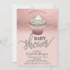 Cute baby shower invitation features rose gold glitter bokeh with a cupcake baby shower. These baby shower invitations are easily customised for your event by simply adding your details.