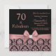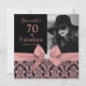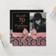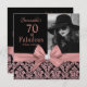 Rose gold glitter black damask | 70th Birthday Invitations. Seventy and Fabulous! A beautiful modern elegant pink rose gold glitter floral damask 70th Birthday Party Invitations you can personalise and send out your seventieth birthday party celebration. At the centre pretty pink bow. Replace the sample photo with your own. The words "70 and Fabulous" are set using popular typhography. You can personalise script fonts and font colours in the design. Please note, this design is a printed photo effect with no real glitter. # 3302b Great for all occasion just change age. Birthday party invites template you can customise with your own details and age. Pretty feminime template for 15th, Sweet 16, Quinceanera, 18th, 20th, 21st, 30th, 40th, 50th, 60th, 70th, 80th, 90th, 100th, Fabulous girls and womens. Please note, this design is a printed photo effect. If you need help, please contact me.