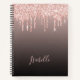 Faux rose gold, copper glitter drip, paint drip look. Black, brown, coffee latte coloured ombre background. Insert your name, written with a modern hand lettered style script. Rose gold coloured letters.The name is written in dark rose gold with a modern hand lettered style script. Perfect for school or as a your secret diary.