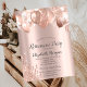 Elegant rose gold glitter drips, and balloons on a rose gold background.