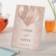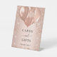 Rose gold, blush background. Decorated with faux glitter drips, sparkles and balloons. With the text: Cards and gifts, thank you!