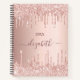 A rose gold faux metallic looking background with elegant faux rose gold glitter drips, paint dripping look. Personalize and add a year/title and a name. The name is written in dark rose gold with a large modern hand lettered style script with swashes. To keep the swashes only delete the sample name, leave the spaces or emoji's in front and after the name.