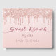 A guest book for a girly and glamourous Baby Shower celebrating a baby girl. A rose gold gradient background with and elegant faux rose gold coloured glitter drips. The text: The text: Guest Book and the name is written in dark rose gold with a modern hand lettered style script. Template for your text on the spine.