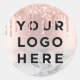 Rose Gold Glitter Drips Marble Your Business Logo Custom Classic Round Sticker